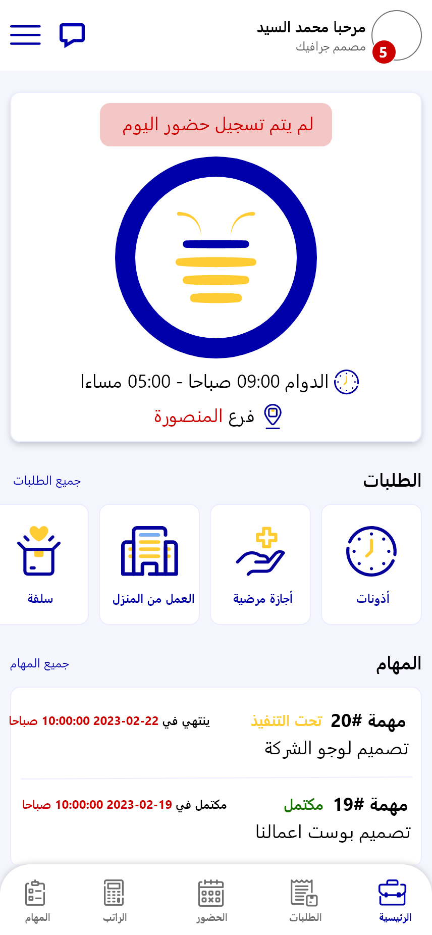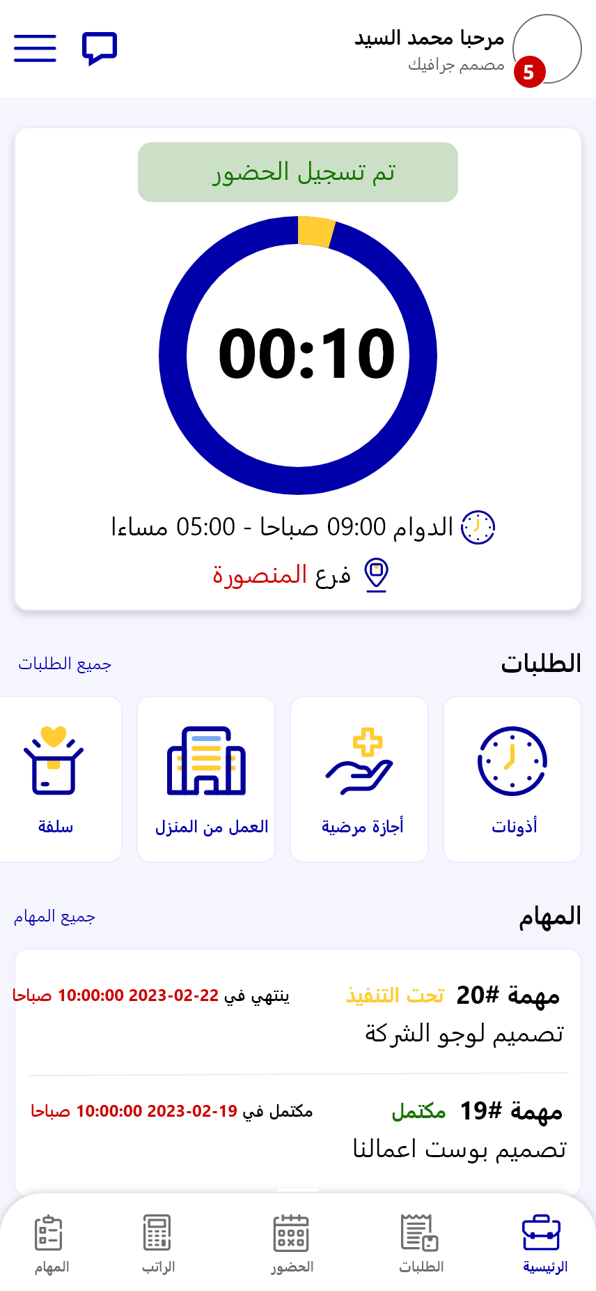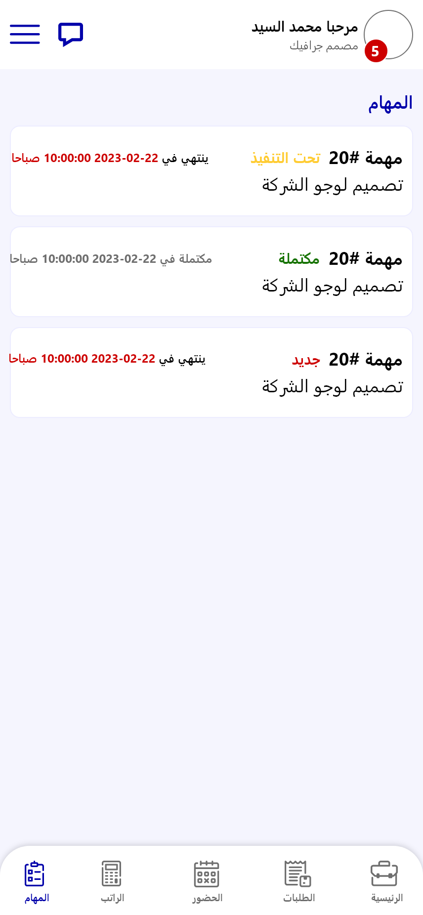 كن للمديرين توزيع المهام على الموظفين وتحديد مواعيد التسليم ومتابعة تقدم العمل. يمكن للموظفين الاطلاع على المهام الموكلة إليهم، مما يساعد في تنظيم العمل.